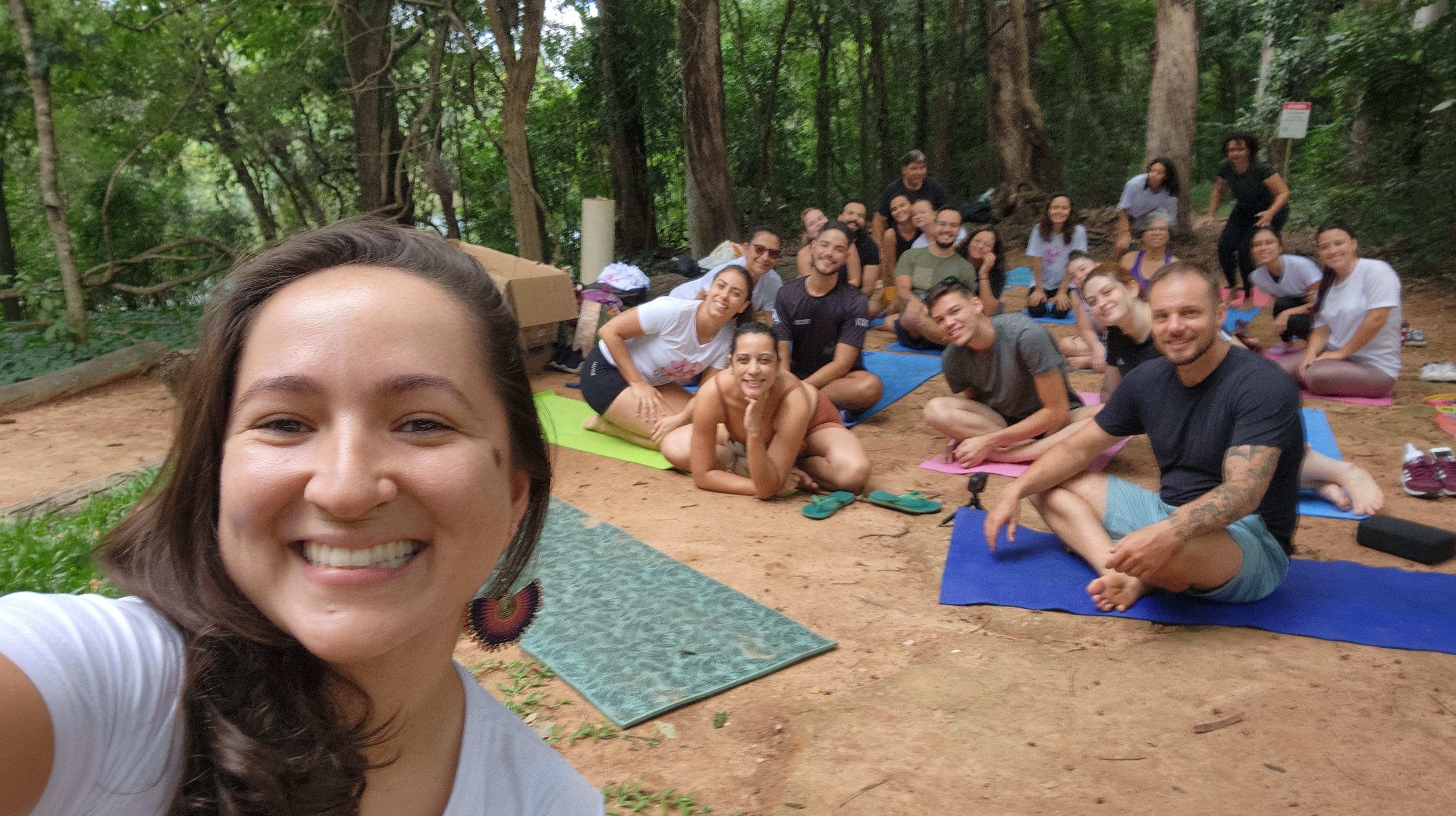 Por isso, em nossas práticas, além da parte física, conversamos sobre aspectos da filosofia, praticamos pranayamas e sempre meditamos.